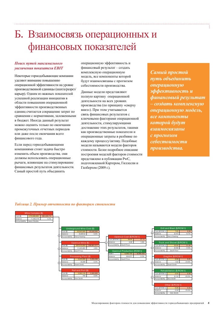 Данная публикация рассказывает о том, как компании горнодобывающего сектора могут повысить и управлять операционной эффективностью своей производственной деятельности по всей цепочке создания стоимости посредством создания и использования комплексных операционных моделей, связывающих операционные и финансовые показатели деятельности.