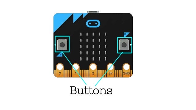 Thus far, we have written some codes that make the micro:bit do something and produce some output. But what about getting the microbit to react and receive inputs? In normal programs, users enter input using the keyboard. For the micro:bit: we don't really see any keyboard... But we do see something else… [next slide]