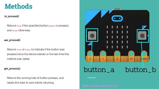 (Pearlyn) Besides is_pressed, we have other functions such as was_pressed and get_presses. As their names imply, was_pressed checks if the button was pressed since run-time. And if it was, a true value will be returned. Else, a false value will return.