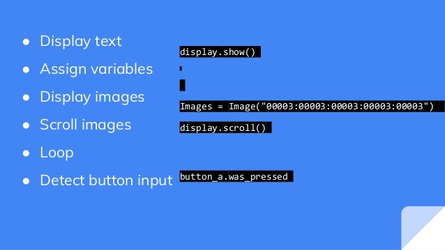 We can code the micro:bit using the graphical Blocks Editor, but since this is PyCon, we will use MicroPython to program the micro:bit. [switch slides that show subset] It is a subset of python created specifically to run on a microcontroller. So how do we begin? [switch slides]