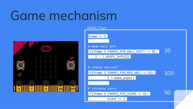 For example, we can create a simple asteroid game using some python and a few minutes. To make a beautiful painting, we first need to have an empty canvas, and that is the same for python. For creating the game background for it to play on, we will first have to initialise a set of grids. Let us briefly import the microbit library, and the random module here to create the positions of the asteroids, because a game where the asteroids fall from only one place would be a bit boring to say the least. Since python is an object-oriented programming language, we will start by defining 2 variables, the asteroids, and the spaceship, as each holding a different value. So, after we define the variables, the asteroids, being generated at random, will move down every 0.7s in successive motion or through what we call loops. So grid 3, being the top grid, would be shifted down to the 2nd grid, and the 2nd grid would be shifted down to the first grid, down to 0. In doing so, the integer values each asteroid carries are carried over to the subsequent grid, thus forming a moving frame. And eventually right before the end of a loop, if the asteroid is right on top of the spaceship, then at the next instance, the value of asteroid that will carried downwards will not tally with the initial value of the spaceship grid, and if we look at line 13, if the value of the grid on top of the spaceship is 4, which is the inherent value of asteroids, it would be different from the 9 that the spaceship holds. And thus it will issue a ‘break’ command and the game will end. Simple as that.