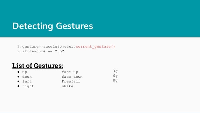 The really interesting side-effect of having such a 3 axis accelerometer is the ability to detect gesture gesture detection. (nxt slide)
