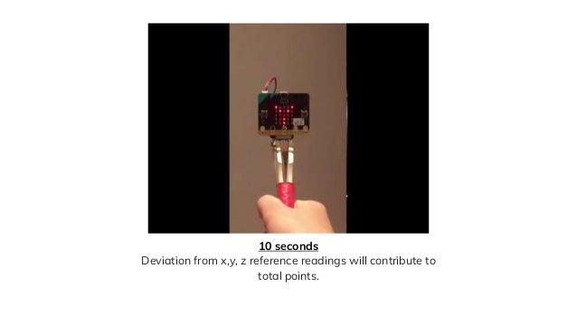 For the next 10 seconds, any deviation from the x, y and z reference readings will contribute points to the total score The lower the total score, the better the user is able to maintain her balance.