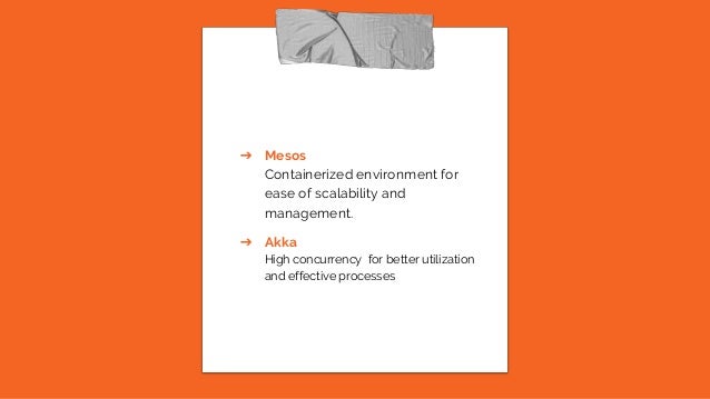 6. 6. ➔ Mesos Containerized environment for ease of scalability and management. ➔ Akka High concurrency for better utilization and effective processes