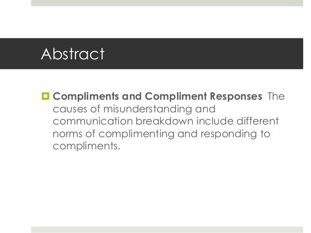 Thecauses of misunderstanding andcommunication breakdown include differentnorms of complimenting and responding tocompliments.