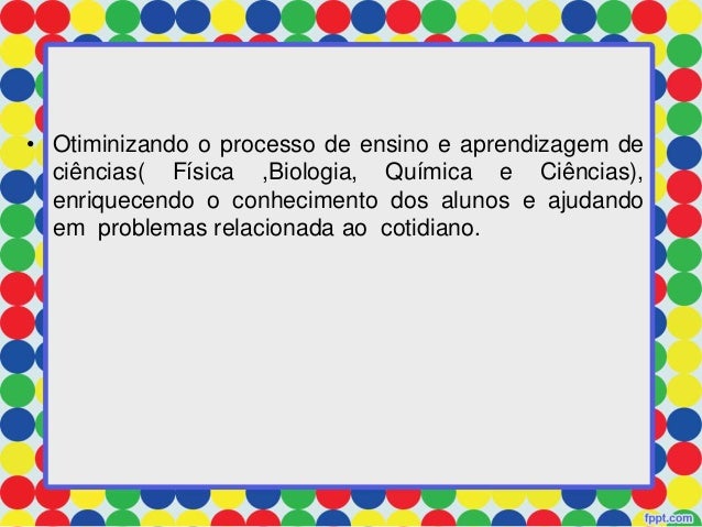 Otimizando o processo de ensino e aprendizagem de ciências( Física ,Biologia, Química) no ensino fundamental, enriquecendo o conhecimento dos alunos e ajudando em problemas relacionado ao cotidiano através de experimentos.