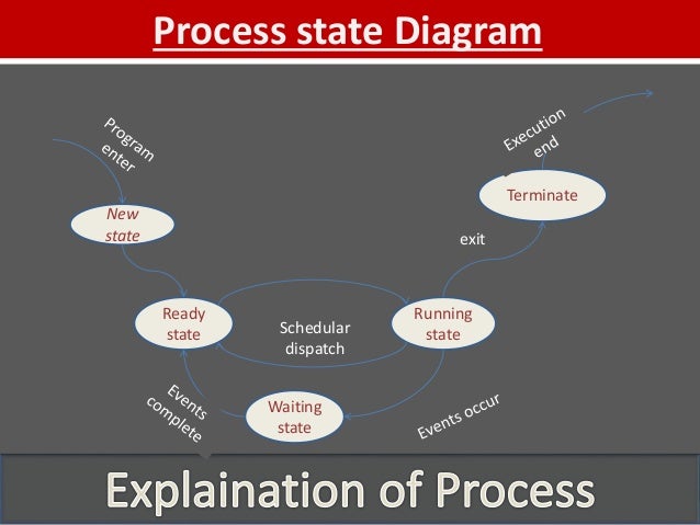 5. 5. Process state •Waitting :- Process is waitting for some events to occurs. * Terminated :- The process has finished the execution. Suppose , in our programm we need to take input by user then we need to use IO package . That time Input / output events occure.