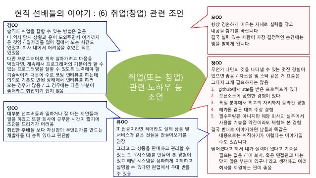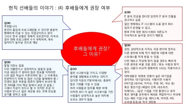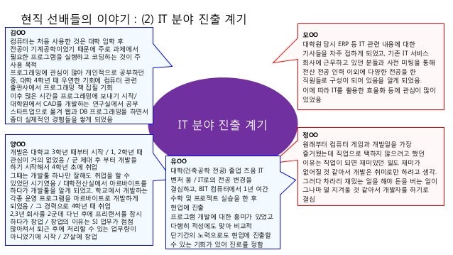 2016년 11월 모 대학에서 IT 계열 전공 재학생들을 대상으로 진행했던 진로 특강 자료입니다.