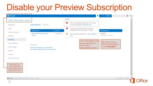 Learn how to convert your Office 365 Developer Preview subscription to a paid Developer subscription using your MSDN benefit.