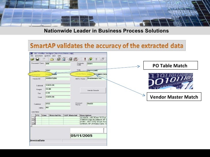 17. 17. PO Table Match Vendor Master Match Nationwide Leader in Business Process Solutions