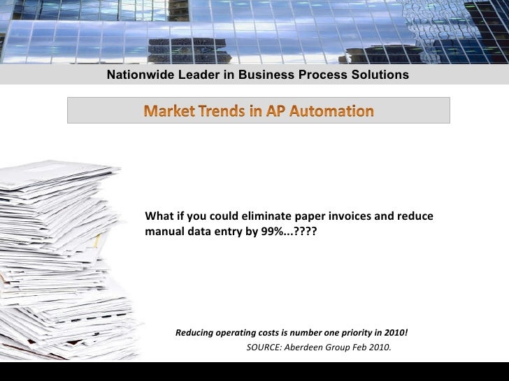 8. 8. What if you could eliminate paper invoices and reduce manual data entry by 99%...???? Reducing operating costs is number one priority in 2010! SOURCE: Aberdeen Group Feb 2010. Nationwide Leader in Business Process Solutions