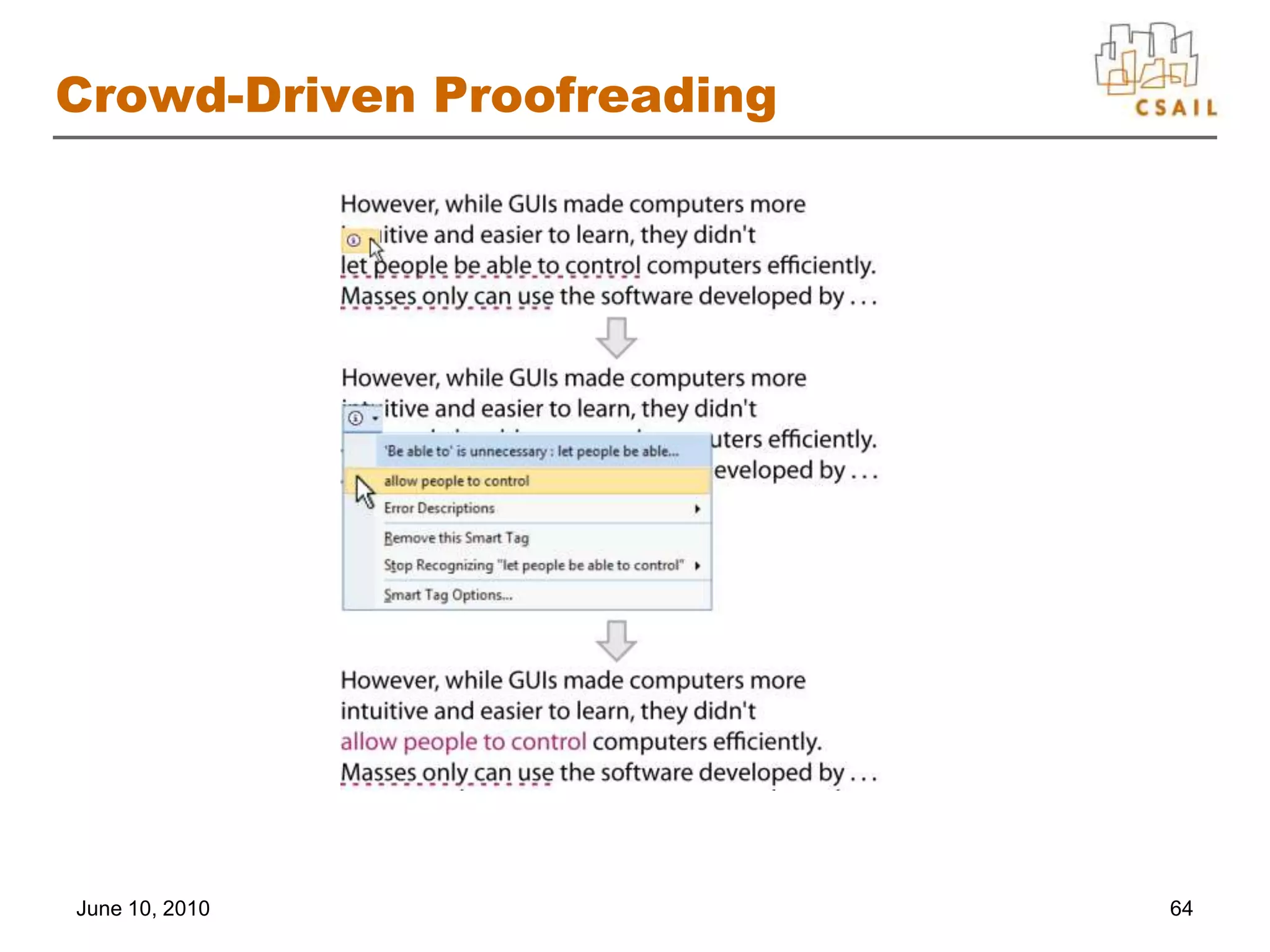 67. 67. Crowd-Driven Proofreading<br />June 10, 2010<br />64<br />