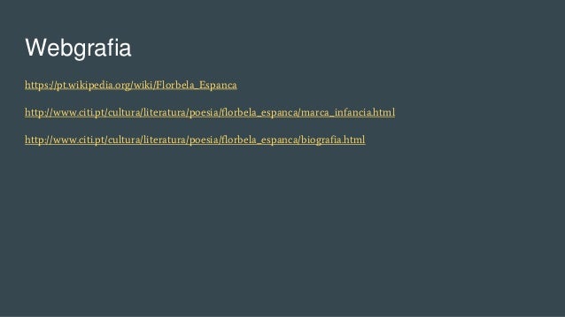 12. 12. Webgrafia https://pt.wikipedia.org/wiki/Florbela_Espanca http://www.citi.pt/cultura/literatura/poesia/florbela_espanca/marca_infancia.html http://www.citi.pt/cultura/literatura/poesia/florbela_espanca/biografia.html