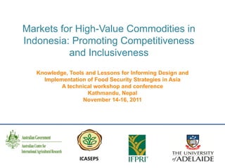 "Markets for high-value commodities in Indonesia”, presented by Wahida Maghraby, ICASEPS, MoA, Indonesia at the ReSAKSS-Asia Conference, Nov 14-16, 2011, in Kathmandu, Nepal.