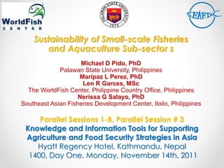 “Fisheries sub-sector example” presented by Michael Pido, Palawan State University, the Philippines at the ReSAKSS-Asia Conference, Nov 14-16, 2011, in Kathmandu, Nepal.