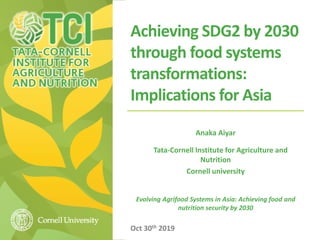 Achieving sdg2 by 2030 through food systems transformations by Anaka Aiyar, Post-Doctoral Associate, Cornell University Presented at the ReSAKSS-Asia - MIID conference "Evolving Agrifood Systems in Asia: Achieving food and nutrition security by 2030" on Oct 30-31, 2019 in Yangon, Myanmar.