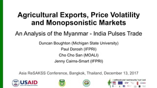Duncan Boughton (Michigan State University), Paul Dorosh (IFPRI), Cho Cho San (MOALI), Jenny Cairns-Smart (IFPRI) Presented at the ReSAKSS-Asia conference “Agriculture and Rural Transformation in Asia: Past Experiences and Future Opportunities”. An international conference jointly organized by ReSAKSS-Asia, IFPRI, TDRI, and TVSEP project of Leibniz Universit Hannover with support from USAID and Deutsche Forschungsgemeinschaft (DFG) at the Dusit Thani Hotel, Bangkok, Thailand December 12–14, 2017.