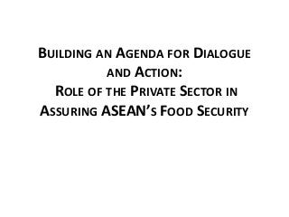 "Role of the private sector in assuring ASEAN's food security: Building an agenda for dialogue and action", presented by David Dyer and Tim Moore, Nathan Associates Jakarta, Indonesia at the ReSAKSS-Asia Conference, Nov 14-16, 2011, in Kathmandu, Nepal.