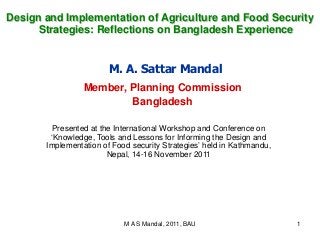 "Design and implementation of food security strategies in Bangladesh" presented by A. Sattar Mandal, Member, Planning Commission at the ReSAKSS-Asia Conference, Nov 14-16, 2011, in Kathmandu, Nepal.
