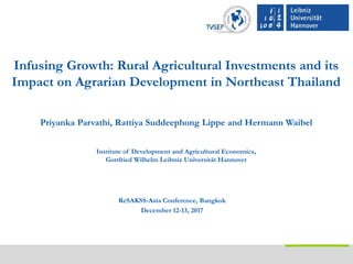 Priyanka Parvathi, Rattiya Suddeephong Lippe, and Hermann Waibel, Institute of Development and Agricultural Economics, Gottfried Wilhelm Leibniz Universität Hannover Presented at the ReSAKSS-Asia conference “Agriculture and Rural Transformation in Asia: Past Experiences and Future Opportunities”. An international conference jointly organized by ReSAKSS-Asia, IFPRI, TDRI, and TVSEP project of Leibniz Universit Hannover with support from USAID and Deutsche Forschungsgemeinschaft (DFG) at the Dusit Thani Hotel, Bangkok, Thailand December 12–14, 2017.