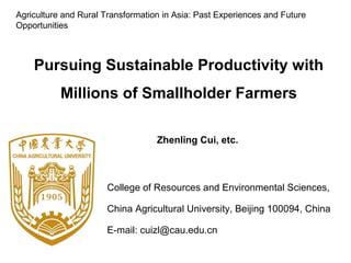 Zhenling Cui, College of Resources and Environmental Sciences, China Agricultural University Presented at the ReSAKSS-Asia conference “Agriculture and Rural Transformation in Asia: Past Experiences and Future Opportunities”. An international conference jointly organized by ReSAKSS-Asia, IFPRI, TDRI, and TVSEP project of Leibniz Universit Hannover with support from USAID and Deutsche Forschungsgemeinschaft (DFG) at the Dusit Thani Hotel, Bangkok, Thailand December 12–14, 2017.