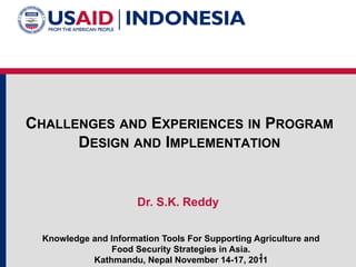 “Reflections on challenges for program design and implementation” presented by Sanath Reddy, USAID-Indonesia, at the ReSAKSS-Asia Conference, Nov 14-16, 2011, in Kathmandu, Nepal.