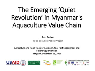 Ben Belton, Michigan State University. Presented at the ReSAKSS-Asia conference “Agriculture and Rural Transformation in Asia: Past Experiences and Future Opportunities”. An international conference jointly organized by ReSAKSS-Asia, IFPRI, TDRI, and TVSEP project of Leibniz Universit Hannover with support from USAID and Deutsche Forschungsgemeinschaft (DFG) at the Dusit Thani Hotel, Bangkok, Thailand December 12–14, 2017.