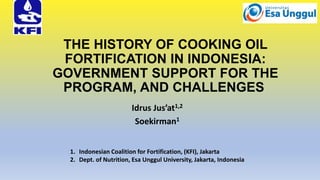 The History of Cooking Oil Fortification in Indonesia: Government Support for the Program and Challenges by Idrus Jus’at, Senior Lecturer, Esa Unggul University, Indonesia. Presented at the ReSAKSS-Asia - MIID conference "Evolving Agrifood Systems in Asia: Achieving food and nutrition security by 2030" on Oct 30-31, 2019 in Yangon, Myanmar.