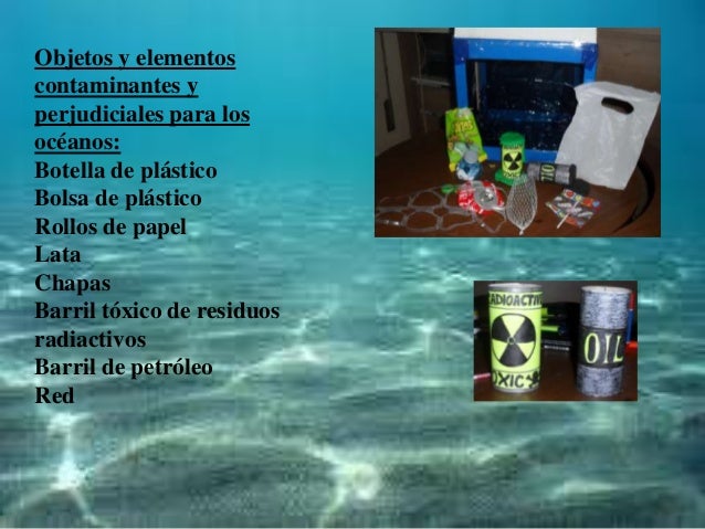 16. 16. Objetos y elementoscontaminantes yperjudiciales para losocéanos:Botella de plásticoBolsa de plásticoRollos de papelLataChapasBarril tóxico de residuosradiactivosBarril de petróleoRed