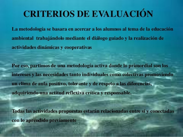 19. 19. CRITERIOS DE EVALUACIÓNLa metodología se basara en acercar a los alumnos al tema de la educaciónambiental trabajándolo mediante el diálogo guiado y la realización deactividades dinámicas y cooperativasPor eso, partimos de una metodología activa donde lo primordial son losintereses y las necesidades tanto individuales como colectivas promoviendoun clima de aula positivo, tolerante y de respeto a las diferencias,adquiriendo una actitud reflexiva crítica y responsable.Todas las actividades propuestas estarán relacionadas entre sí y conectadascon lo aprendido previamente