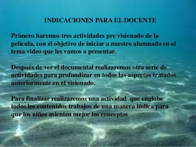 4. 4. INDICACIONES PARA EL DOCENTEPrimero haremos tres actividades pre visionado de lapelícula, con el objetivo de iniciar a nuestro alumnado en eltema video que les vamos a presentar.Después de ver el documental realizaremos otra serie deactividades para profundizar en todos las aspectos tratadosanteriormente en el visionado.Para finalizar realizaremos una actividad que englobetodos los contenidos trabajos de una manera lúdica paraque los niños asienten mejor los conceptos