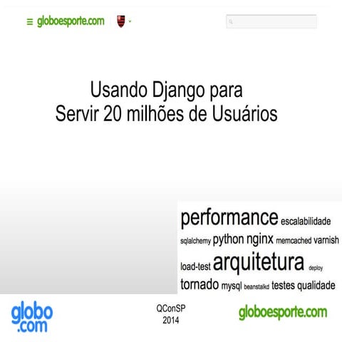 Apresentação sobre uma arquitetura usando django para atender 20 milhões de usuários.