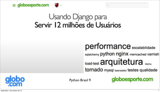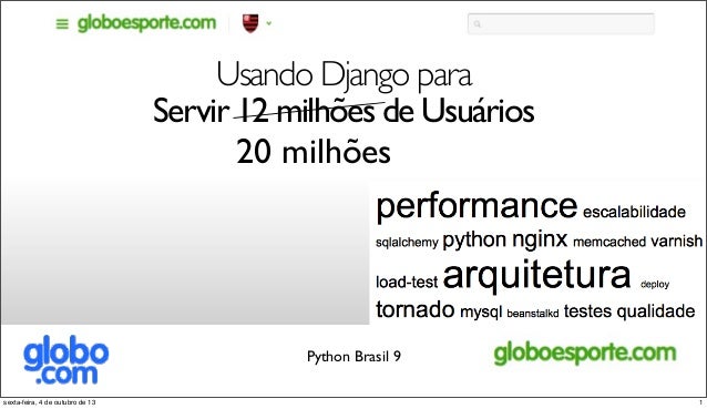1. 1. Usando Django para Servir 12 milhões de Usuários Python Brasil 9 1sexta-feira, 4 de outubro de 13