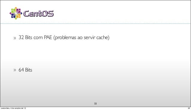 23. 23. 22 32 Bits com PAE (problemas ao servir cache)» 64 Bits» 22sexta-feira, 4 de outubro de 13