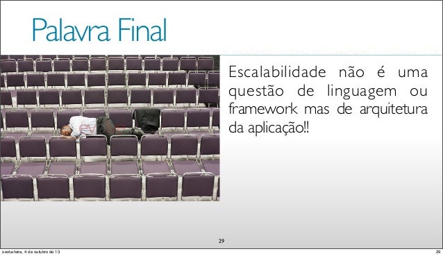 30. 30. Palavra Final 29 Escalabilidade não é uma questão de linguagem ou framework mas de arquitetura da aplicação!! 29sexta-feira, 4 de outubro de 13