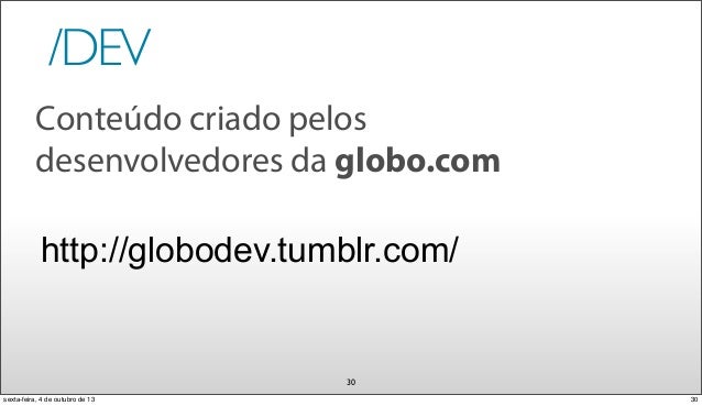 31. 31. /DEV 30 http://globodev.tumblr.com/ Conteúdo criado pelos desenvolvedores da globo.com 30sexta-feira, 4 de outubro de 13