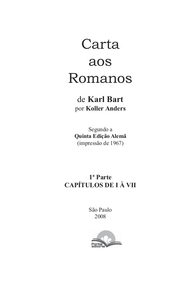 2. 2. Carta aos Romanos de Karl Bart por Koller Anders Segundo a Quinta Edição Alemã (impressão de 1967) 1ª Parte CAPÍTULOS DE I À VII São Paulo 2008