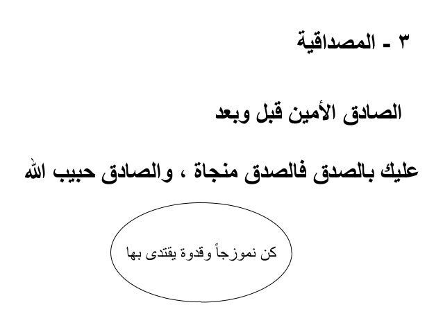 13. 13. ‫3 - المصداقية‬ ‫الصادق األمين قبل وبعد‬ ‫عليك بالصدق فالصدق منجاة ، والصادق حبيب هللا‬ ‫كن نموزجا ً وقدوة ٌقتدى بها‬