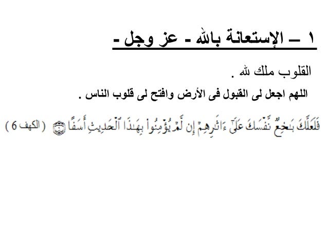 8. 8. ‫1 – اإلستعانة باهلل - عز وجل -‬ ‫القلوب ملك هلل .‬ ‫اللهم اجعل لى القبول فى األرض وافتح لى قلوب الناس .‬