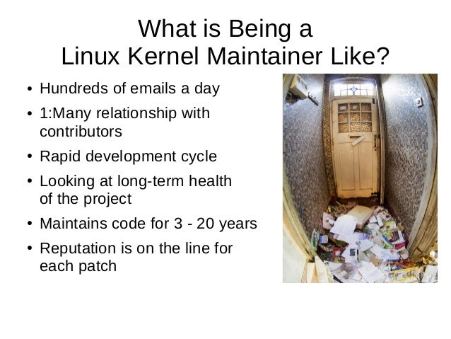An introduction to how the Linux kernel works: maintianers, scaling trust, and no regressions. This talk also gives tips to people who want to get involved with Linux kernel development, either through reporting bugs, reviewing code, or developing code.