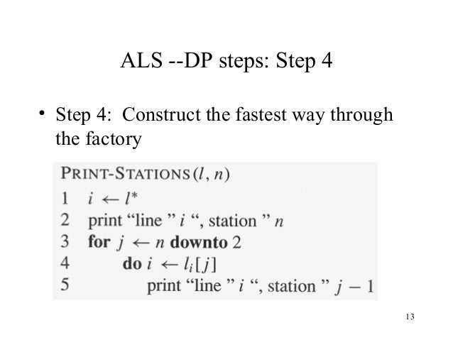 13. 13. 13 ALS --DP steps: Step 4 • Step 4: Construct the fastest way through the factory