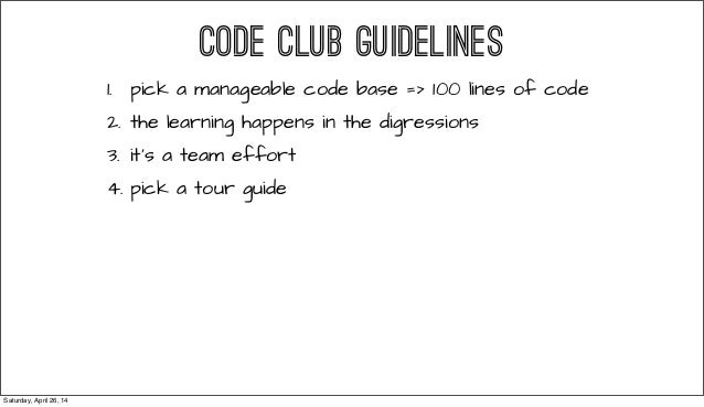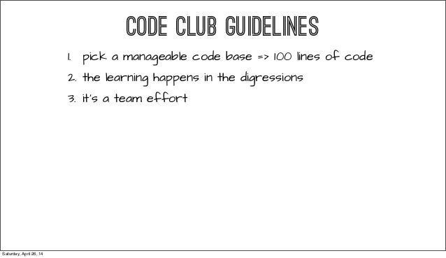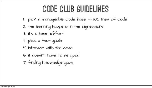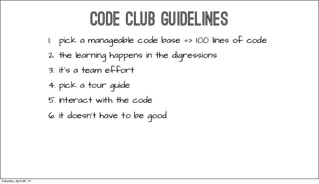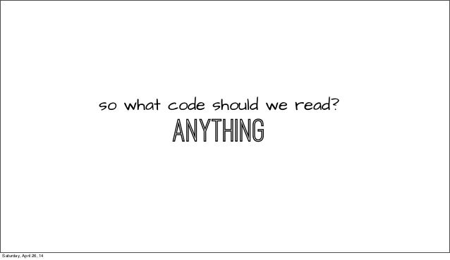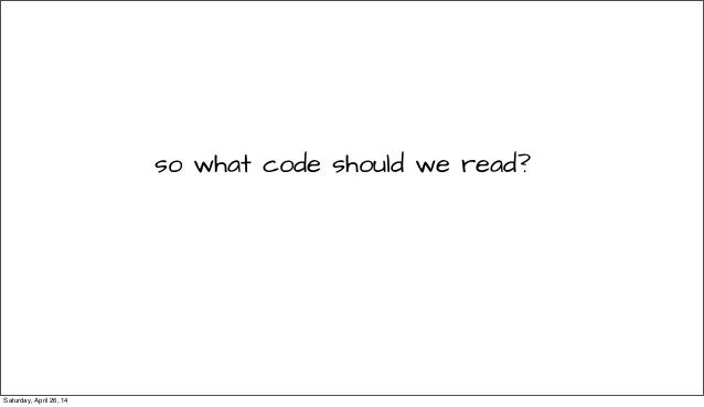 From RailsConf 2014 - Everyone tells you that being a great programmer means reading lots of code. This talks gives you guidelines on starting your own Code Club (a Book Club, but for reading code!), and how to make the most as a developing programmer. Follow @readingcodegood for codebases to get you started. And tell us about great code that you've read!