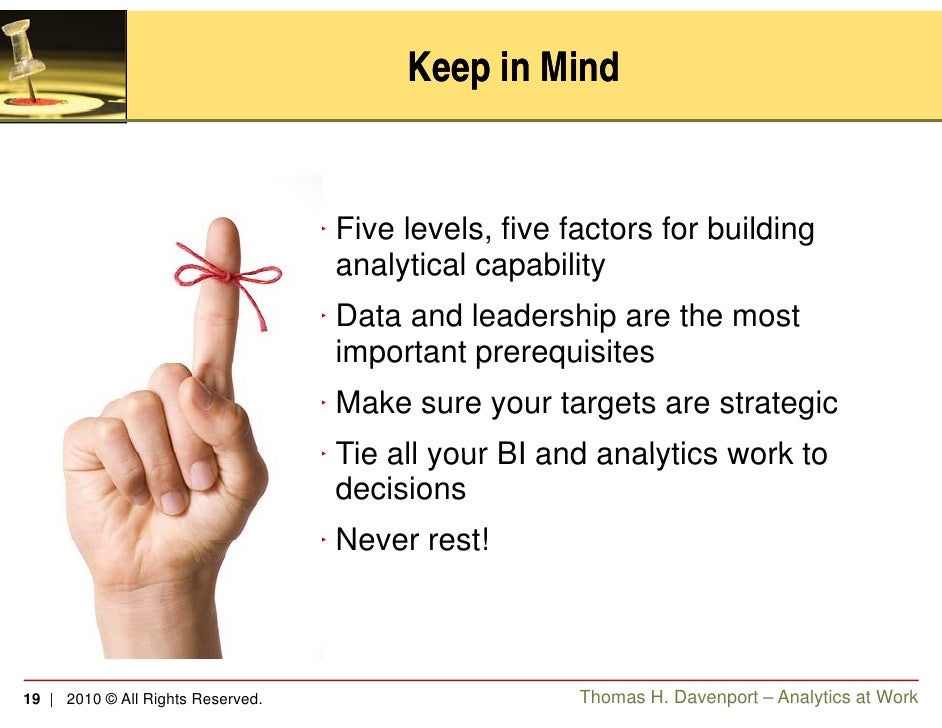 Davenport will present straightforward, practical advice from his new book Analytics at Work: Smarter Decisions, Better Results, including laying out a plan of action for deploying and succeeding with business analytics inside your company.
