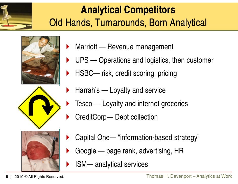 Thomas H. Davenport, best-selling co-author of Competing on Analytics and Analytics at Work, and President's Distinguished Professor at Babson College presented at the Premier Business Leadership Series 2010 http://www.sas.com/theserieshk