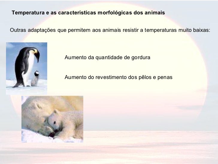 Temperatura e as características morfológicas dos animais Outras adaptações que permitem aos animais resistir a temperatur...