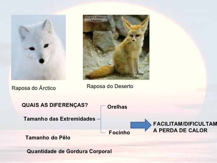 Raposa do Árctico Raposa do Deserto QUAIS AS DIFERENÇAS? Tamanho das Extremidades Orelhas Focinho Tamanho do Pêlo Quantida...
