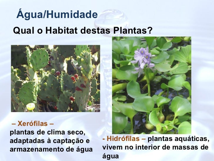 Água/Humidade Qual o Habitat destas Plantas? –  Xerófilas –  plantas de clima seco, adaptadas à captação e armazenamento d...