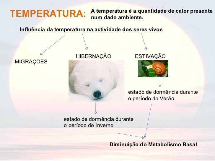 Influência da temperatura na actividade dos seres vivos MIGRAÇÕES HIBERNAÇÃO ESTIVAÇÃO estado de dormência durante o perío...
