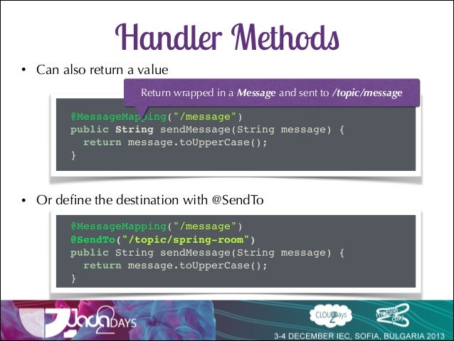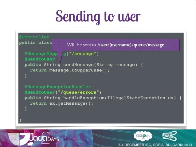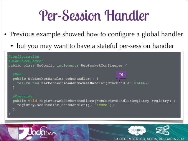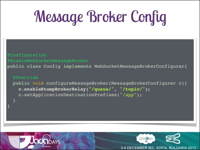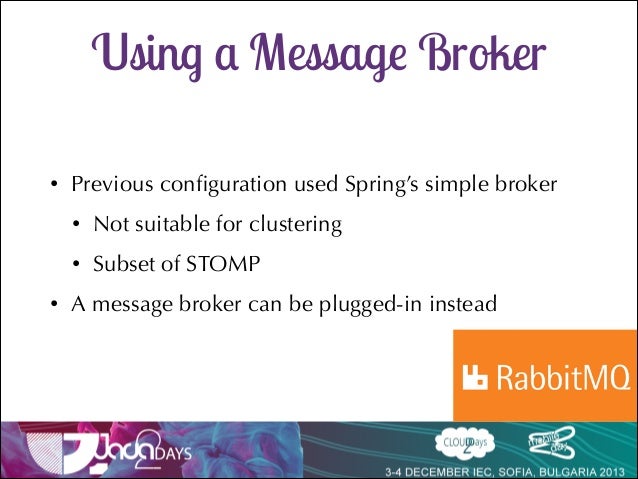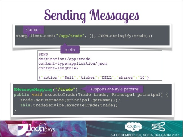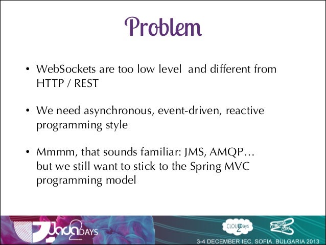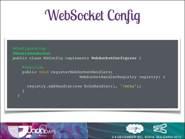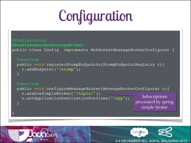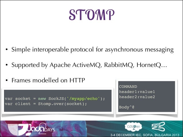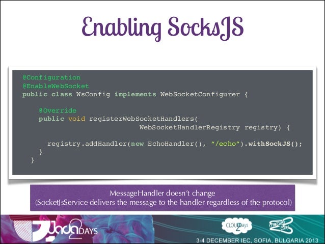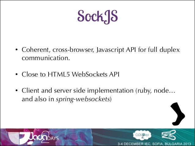 Talk delivered at Java2Days 2013 on Websocket support in Spring 4 with SockJs and Stomp