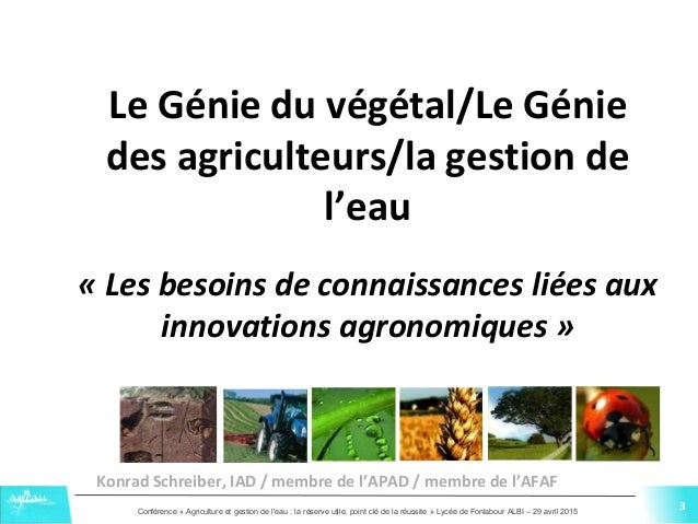 diaporama de présentation de Konrad Schreiber lors de la conférence "Agriculture et gestion de l’eau : la réserve utile, point clé de la réussite" du 29 avril 2015 à Albi